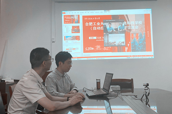 测控技术与仪器系马孟超、程荣俊两位老师承担了2022年学院定点帮扶利辛机电科技学校职业教育工作。因疫情影响,5月24日上午,通过线上与利辛机电科技学校自动控制专业教师开展了教学交流研讨会,两位教师结合自己成长经历,与机电学校教师分享的教学经验,开展了教学交流,就《自动控制原理》课程在教学中实际应用,对利辛机电科技学校机电专业课老师们进行了指导,同时对《自动控制原理》课程相关师生进行了示范教学辅导。