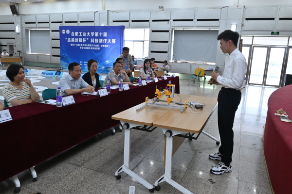 本次大赛共分为智能车和科技制作两个赛道,智能车赛道分为沁恒和兆易两个类别,共有40余组参赛。经过一天激烈的角逐,沁恒组共选出一等奖4支队伍,二等奖6支队伍,三等奖10支队伍;兆易组共选出一等奖3支队伍,二等奖4支队伍,三等奖7支队伍,同时选拔出6支队伍参加安徽省智能车竞赛。科技制作赛道通过初赛和复赛选拔,共有11件作品进入决赛,决赛现场专家评委从作品功能、创新点、存在的不足等方面对参赛作品进行评审,并提出改进建议。经过评委审议,作品“清淼智航—智能清污设备及管理系统引领者”、作品“Osboat—基于视觉识别系统的海上一体化清油平台”荣获一等奖;作品“水陆两栖垃圾清理机器人”、作品“城市下穿隧道积水预警系统”、作品“花生种植自动破膜系统”、作品“共享雨伞解决方案&雨伞寄存服务”荣获二等奖;作品“社区安防机器人”、作品“基于卷积神经网络的油菜病害识别无人机系统”、作品“超视科技-全方位桥梁巡检云平台”、作品“墨水屏气象台历”、作品“水产养殖移动检测船”荣获三等奖。
