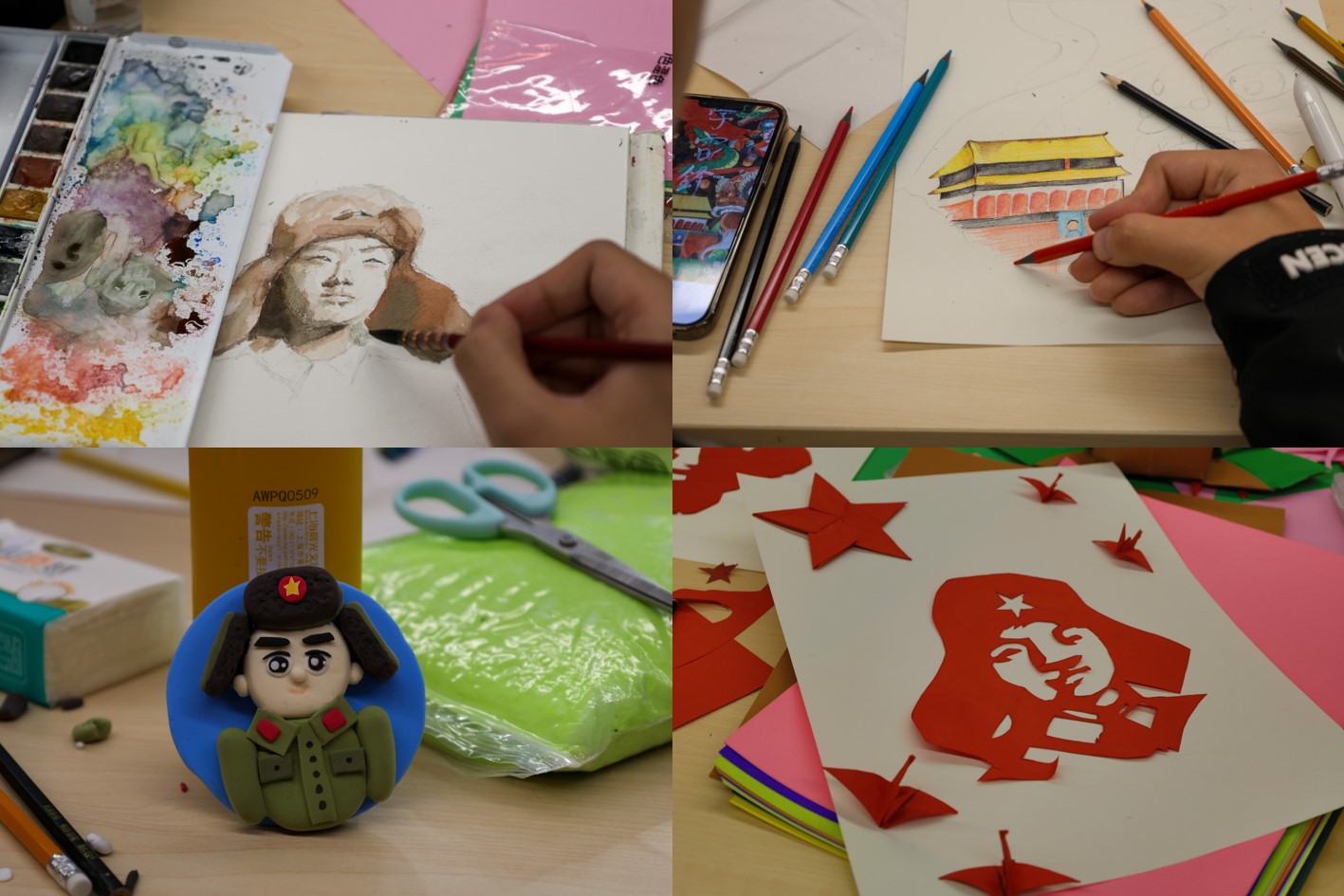 随后,现场同学根据对雷锋精神的理解,开展了绘画、剪纸、陶艺等美育活动,通过手工艺讲述雷锋故事,铭记雷锋精神。
