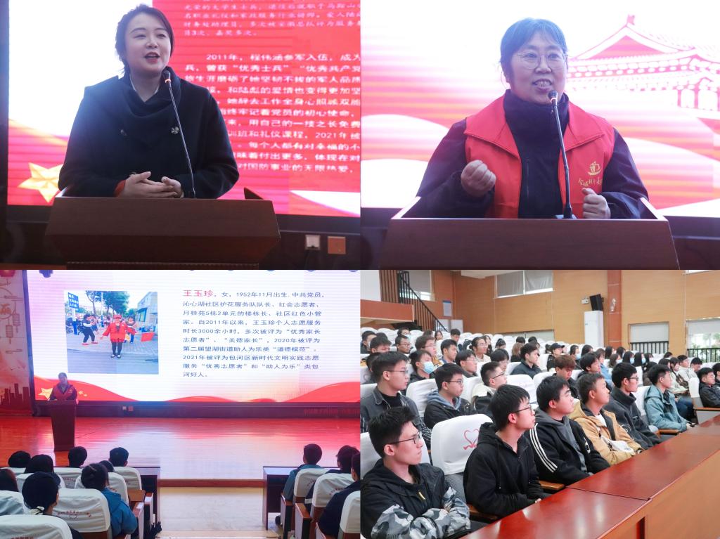 报告会上,王玉珍讲述了自己创建“护花服务队”的历程和十年如一日风雨无阻坚持护送儿童上学放学的事迹。程伟涵分享了自己作为“巾帼宣讲团”成员,发挥自身优势特长,义务开办少儿礼仪培训班、参与疫情防控的青春故事。朱海燕讲述了退休后积极参与合肥南站志愿服务、协商解决群众难题的事迹。同学们认真聆听,深受感动,纷纷表示要向优秀志愿者学习,传承雷锋精神要从自己做起,从身边做起,为社会发展奉献青春力量。