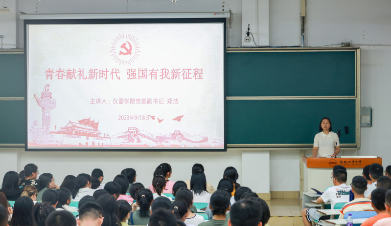 为坚定新生理想信念,厚植新生爱国爱党情怀,9月8日,yL23411永利官网登录党委副书记兼纪委书记郑洁在翡翠湖教学楼为学院全体2023级新生作“青春献礼新时代,强国有我新征程”理想信念教育主题报告。