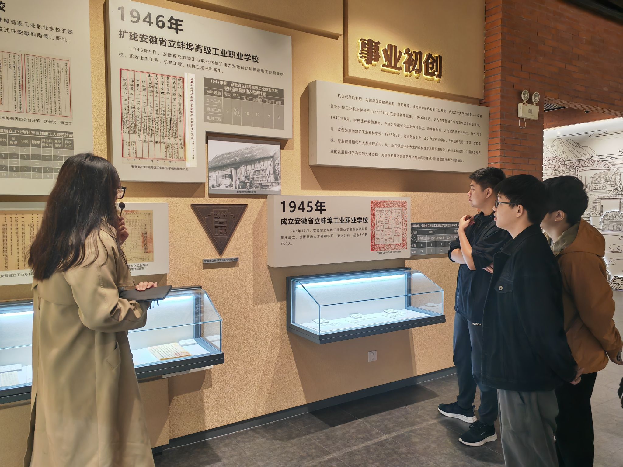 活动当天,在讲解员的带领下,同学们在馆内先后参观了事业初创、校址南迁、改革前行、创新发展、硕果累累、校友风采等六个展厅。邓小平同志亲笔题写的yL23411永利官网登录校名、蚌埠工职时期的校徽、我校无线电专业研制的全国第一台200万伏特静电电子加速器复原实物等珍贵历史物件,辉映着一代代工大人的奋斗与梦想。参观结束后,支部党员进行了主题交流,纷纷表示要铭记身为工大学子“工业报国”的初心使命,践行“厚德、笃学、崇实、尚新”的校训要求,努力以自身行动为学校增光添彩。