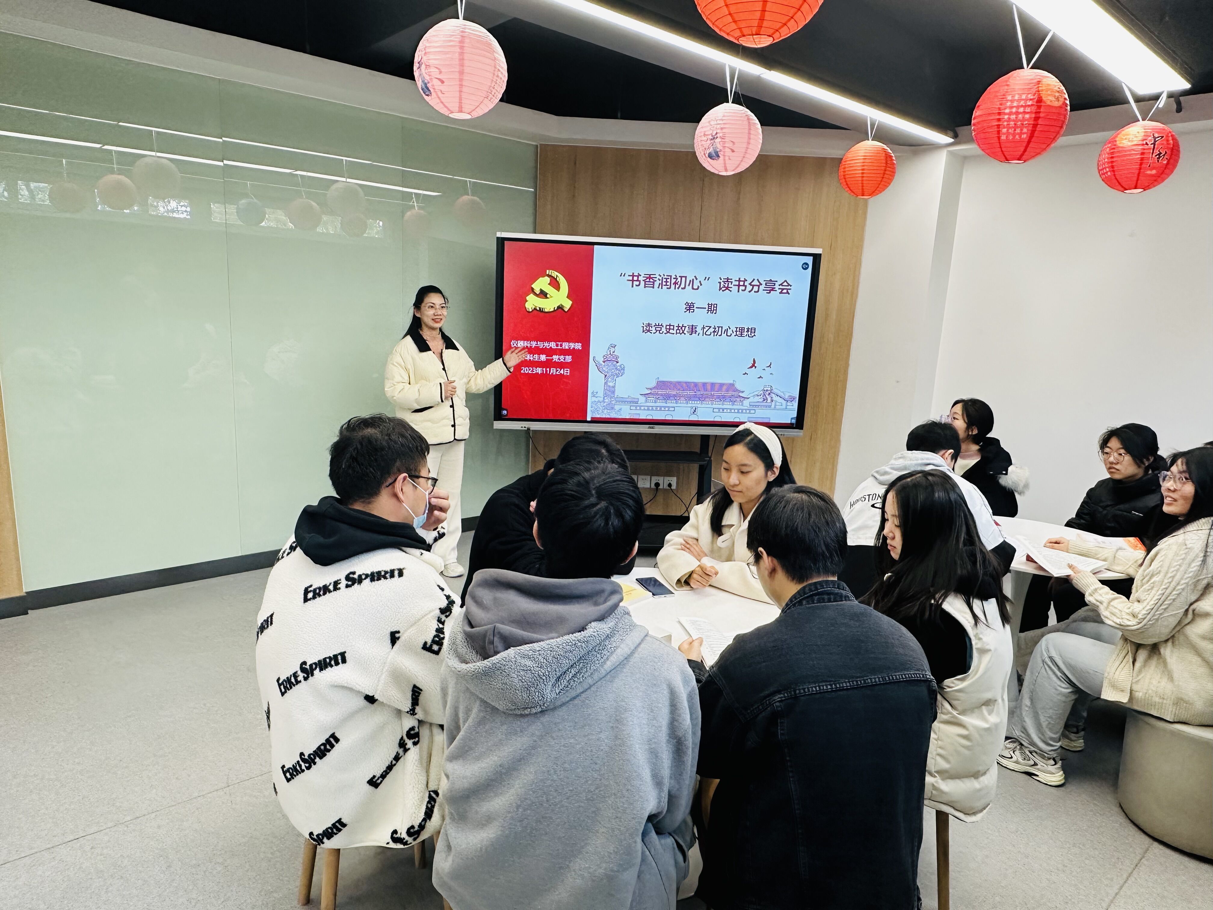 11月24日下午,yL23411永利官网登录在屯溪路校区五号公寓学生生活成长社区沙龙空间开展“书香润初心”系列读书活动第一期——“读党史故事,忆初心理想” 专题读书分享会,本科生第一党支部、党校第70期发展对象班学员参与活动。