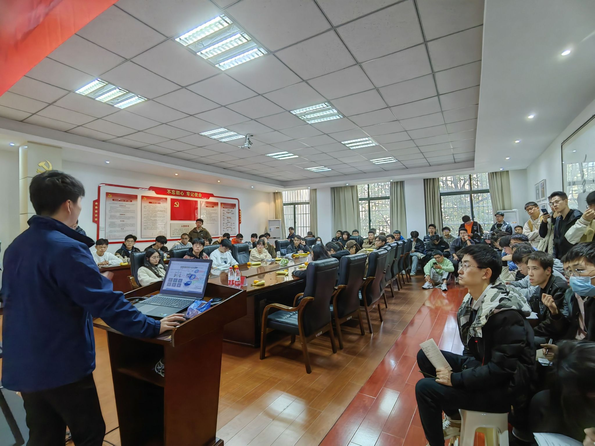 韩旭结合自身科研经历,以光互联技术和高维数据通信为切入点,向与会人员分享了相关研究成果和经验,介绍了与传统硅材料相比薄膜铌酸锂材料所带来的技术突破。他鼓励同学们充分挖掘创新热情,提高自主创新能力和逻辑思维能力,勇攀科技高峰,努力成长为“适应党和国家事业发展需要”的德才兼备的高层次人才。最后,韩旭详细解答了同学们提出的问题,为他们开展科研创新研究提供了启发。