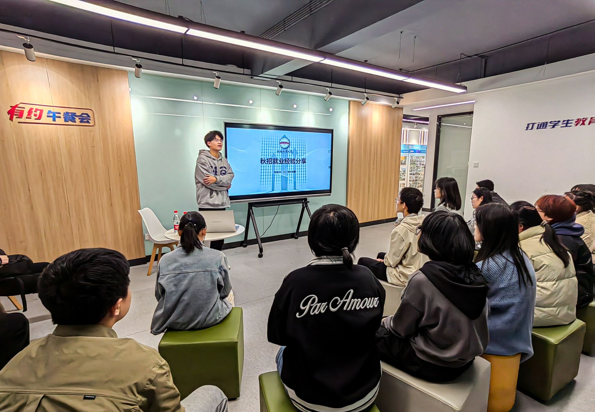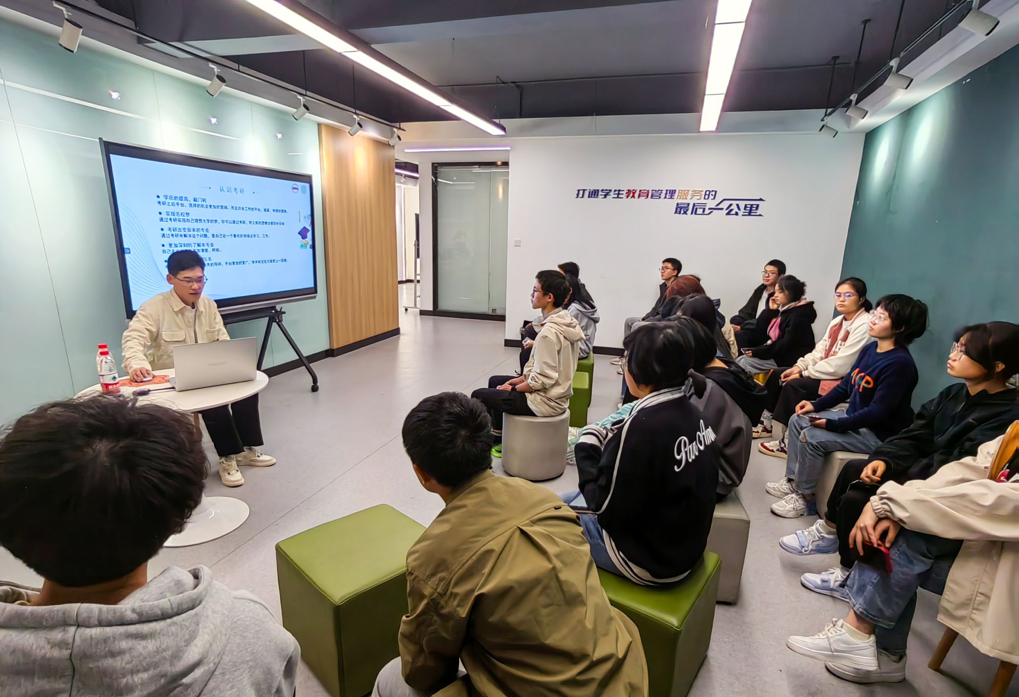 艾虎结合研究生备考经历,从前期准备、考研规划、备考策略三方面展开分享,并与同学们深入交谈未来规划,对低年级同学提出了“重基础明确理想目标”“提能力夯实专业本领”“善作为注重全面发展”等建议。宁志豪主要围绕毕业季秋招求职经历,分析了当前就业局势,提出“注重平时成绩、积极参加竞赛、关注实践提升、强化人际交往”建议。分享结束后,两位主讲人与现场同学积极互动,热心解答同学们的疑问,活动在轻松愉悦的氛围中结束。