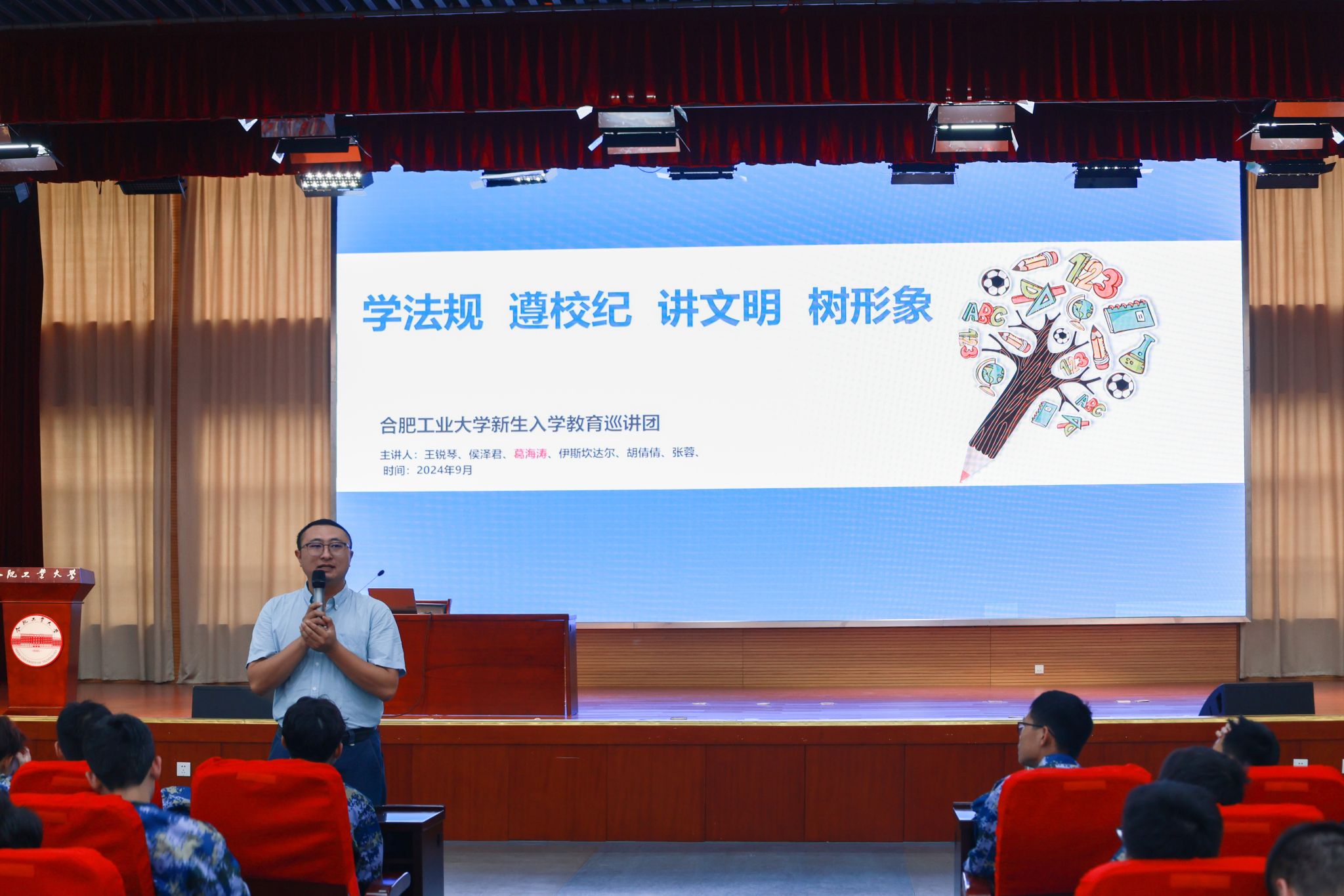 为引导新生树立自律意识、强化遵纪守法观念,9月5日上午,化工学院、yL23411永利官网登录于翡翠湖校区科教楼报告厅联合开展校纪校规教育。此次活动邀请入学教育巡讲团成员葛海涛担任主讲,面向化工学院、yL23411永利官网登录2024级全体本科新生。